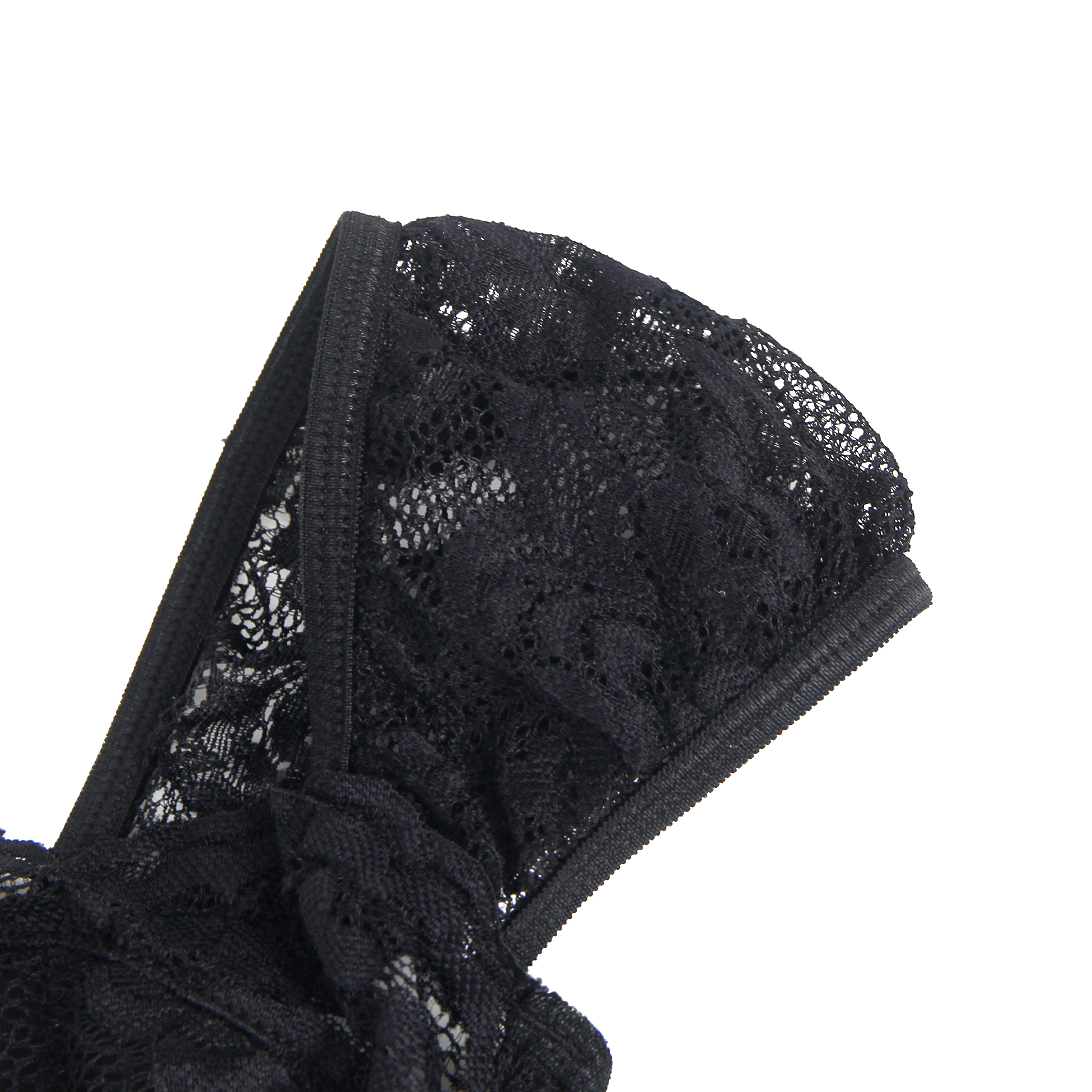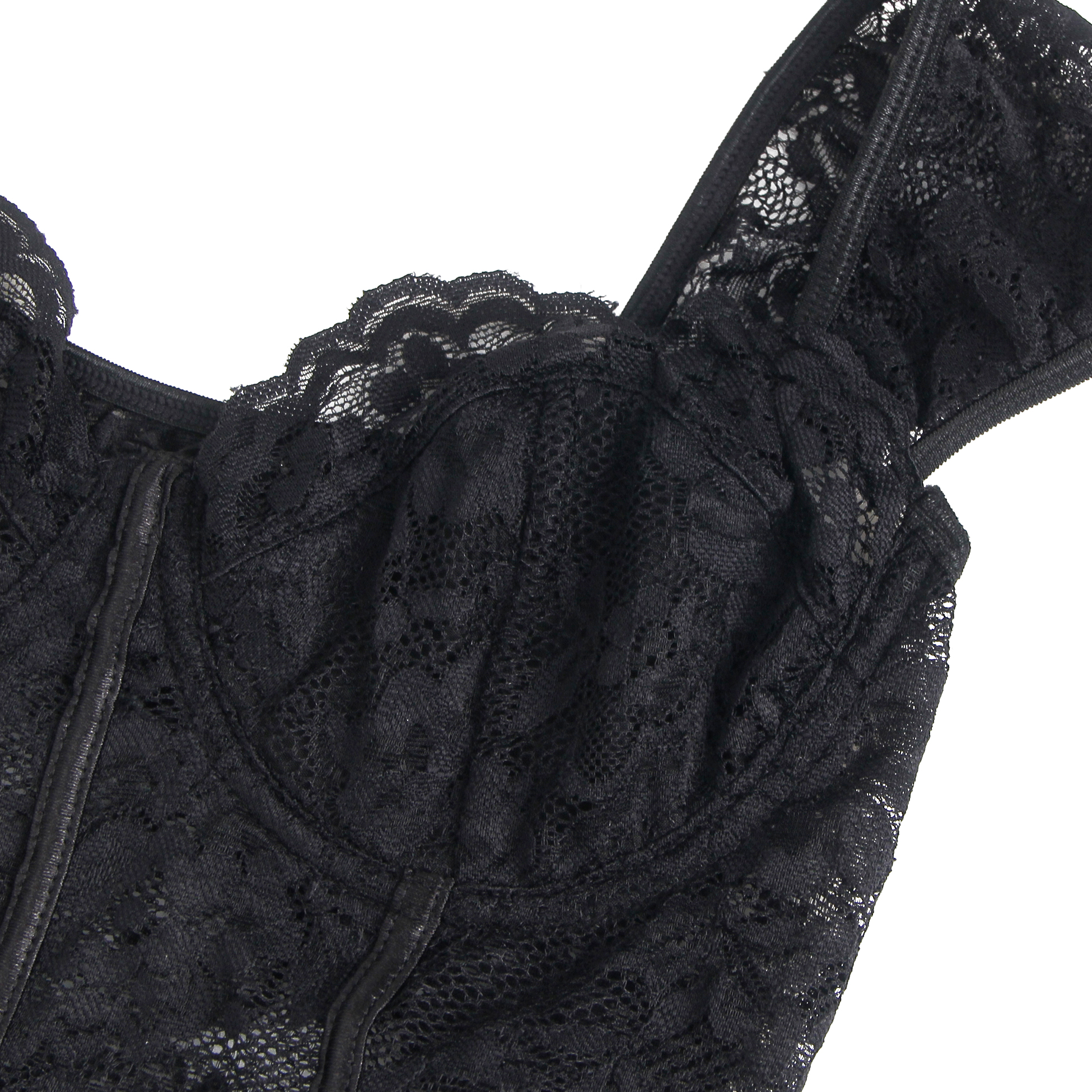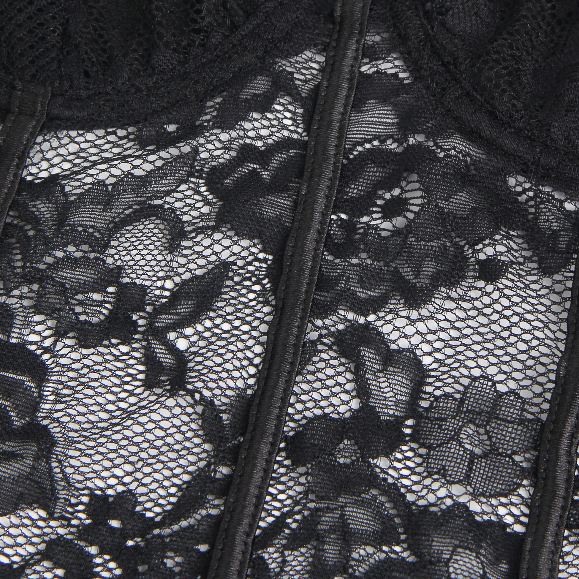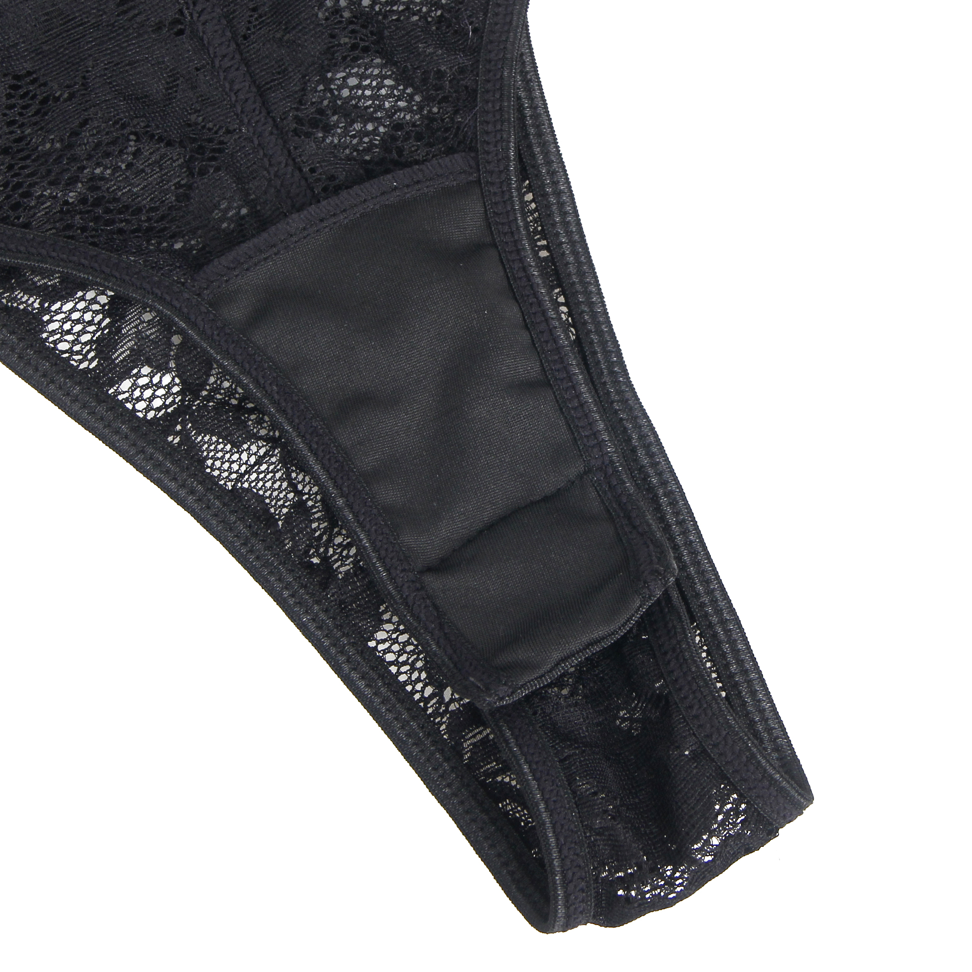 Black Lace Square Neck Short Sleeves Open Crotch Bodysuit
